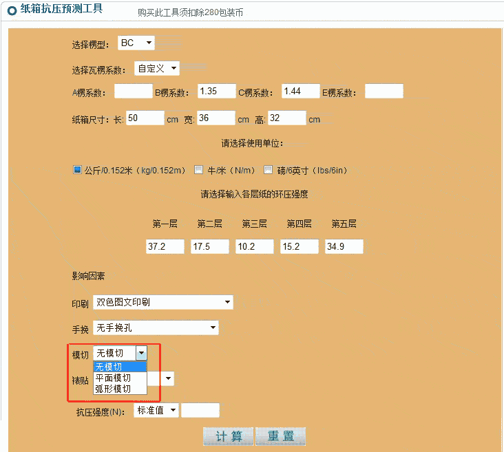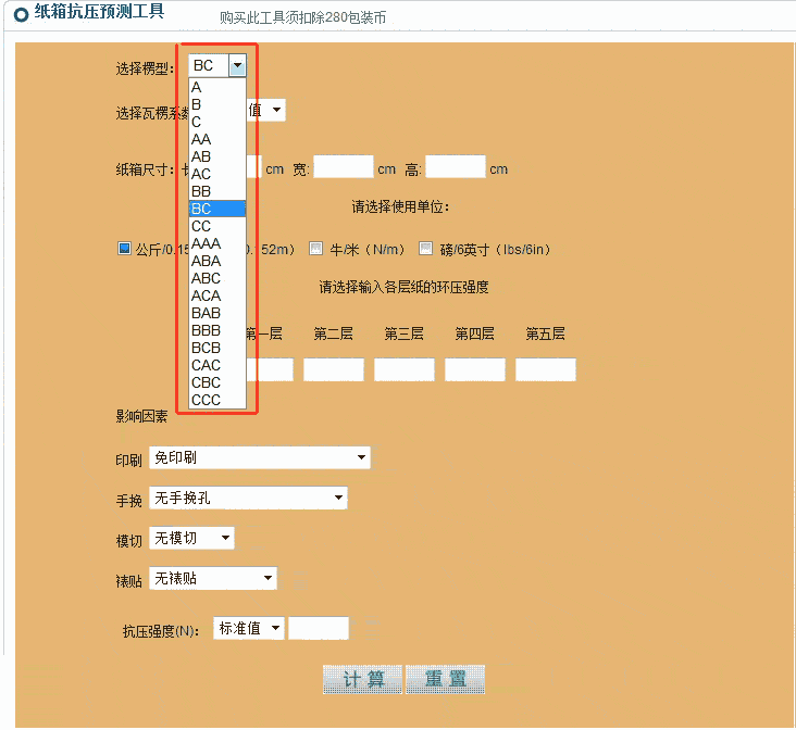 纸箱抗压强度测算工具使用说明