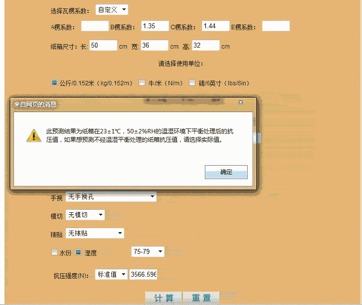 为保证测算值的准确性,输入的各层原纸的横向环压值须是试样经过标准温湿环境平衡处理后所测得的值。