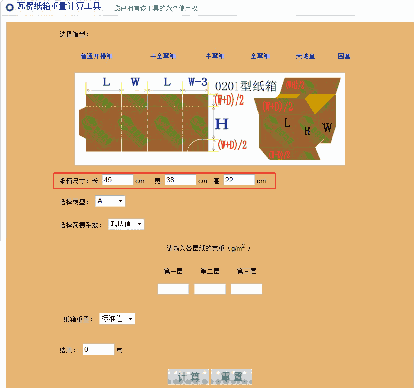 纸箱重量测算工具使用说明