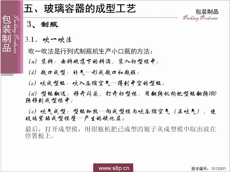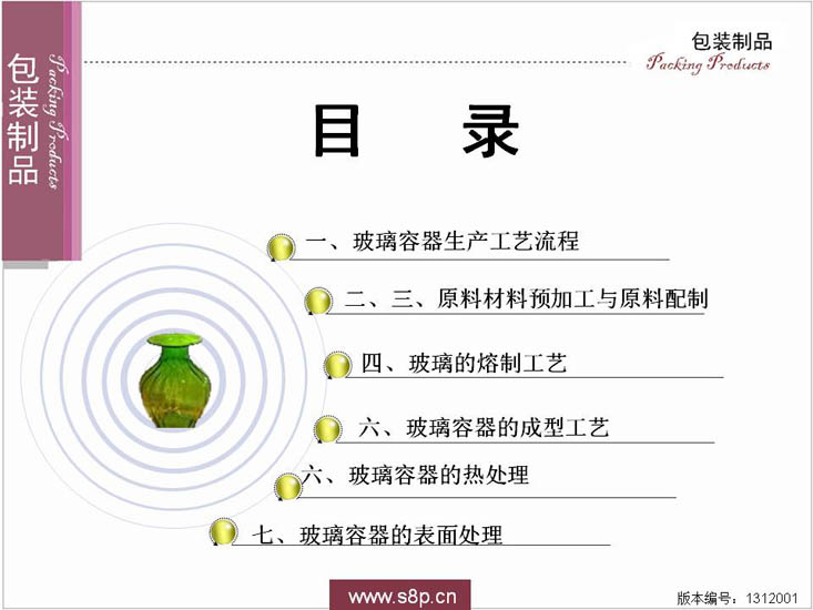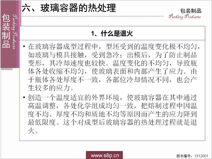 玻璃容器的加工工艺包括:原料制备,熔制,成型,热处理,表面处理等工艺流程,本培训电子书正是从这几个方面详细讲解玻璃容器的生产工艺流程及细节性问题。