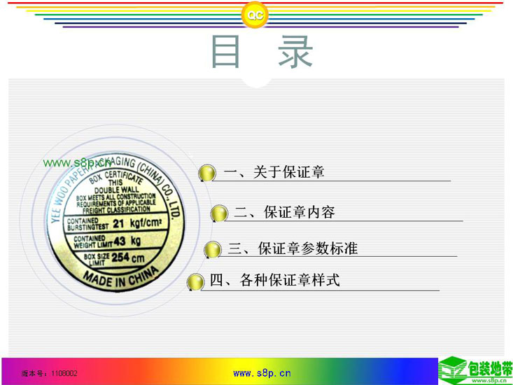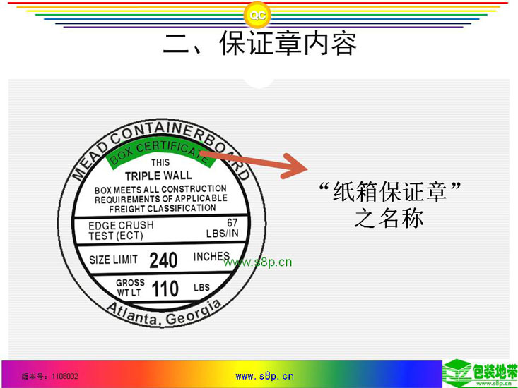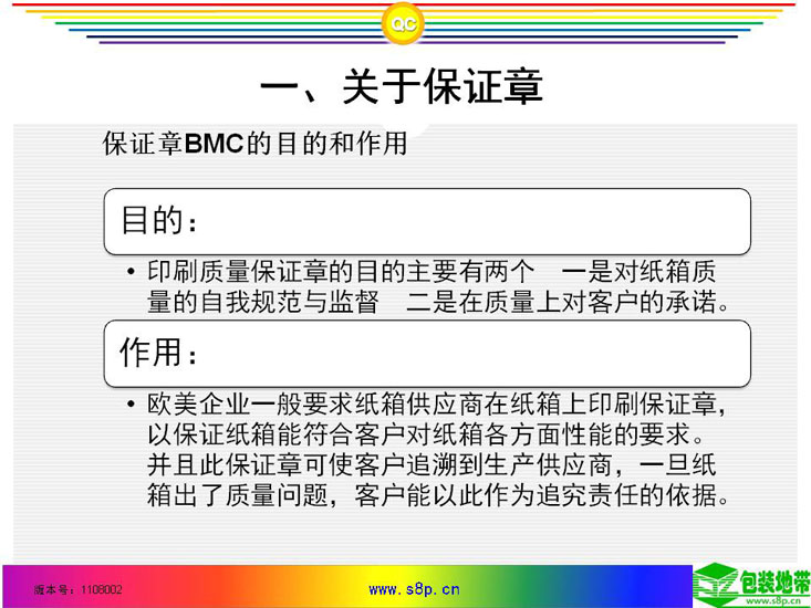 此培训为最新版本的保证章培训教材。适用人员:纸箱企业管理人员、生产技术人员、品管人员及其它相关人员
