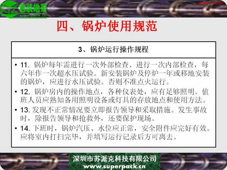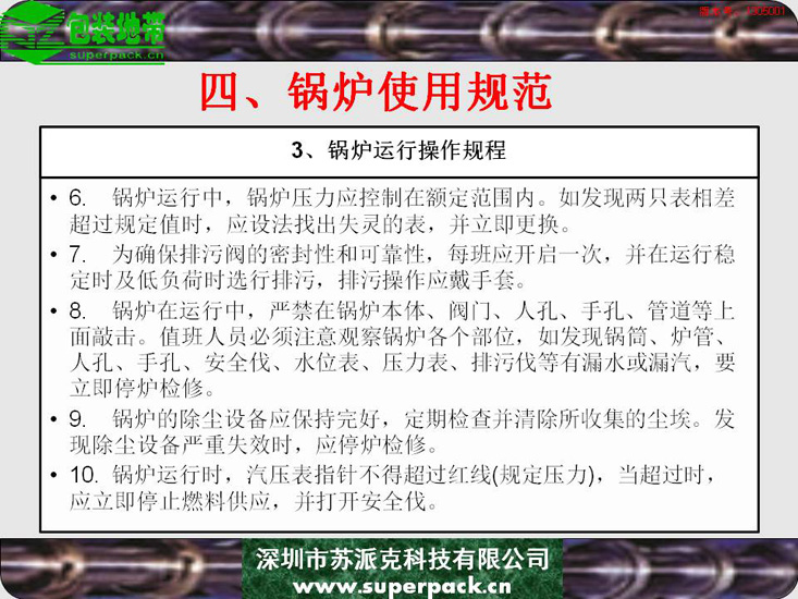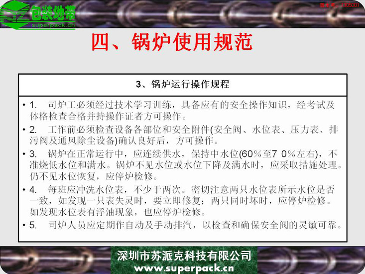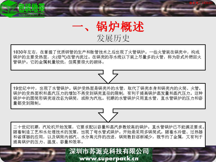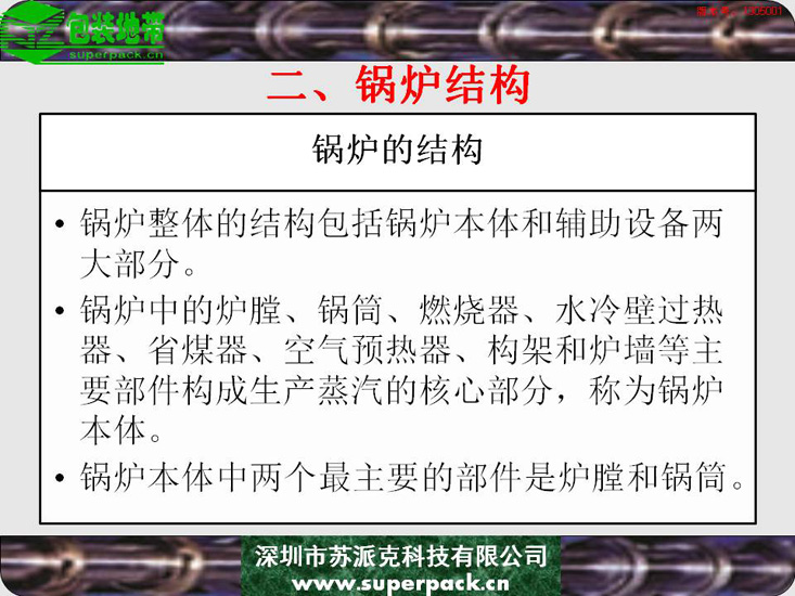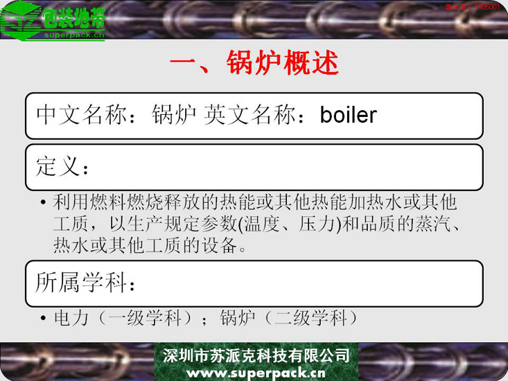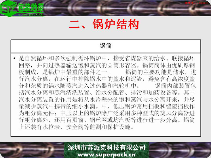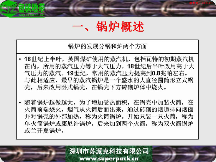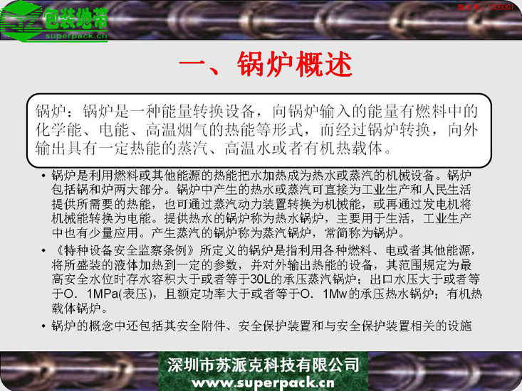锅炉不仅影响企业安全生产的重要因素,也直接影响到纸板厂、造纸厂等企业生产的产品质量。本电子书对锅炉的结构、类型及操作规程进行全面的培训。适合对象包括:锅炉操作工、安全管理人员及与锅炉使用相关的人员。