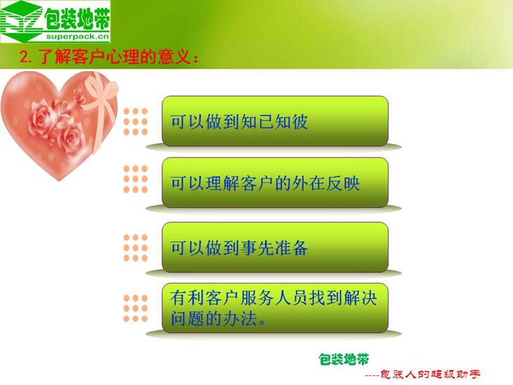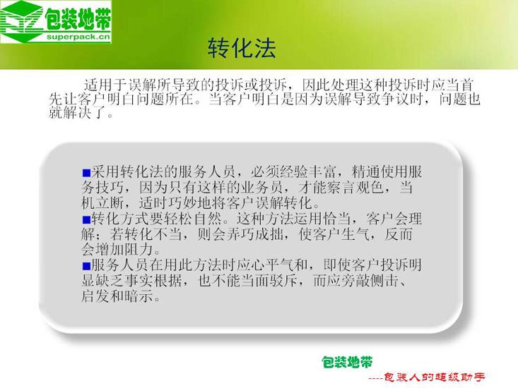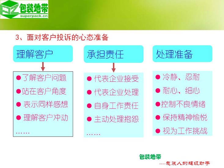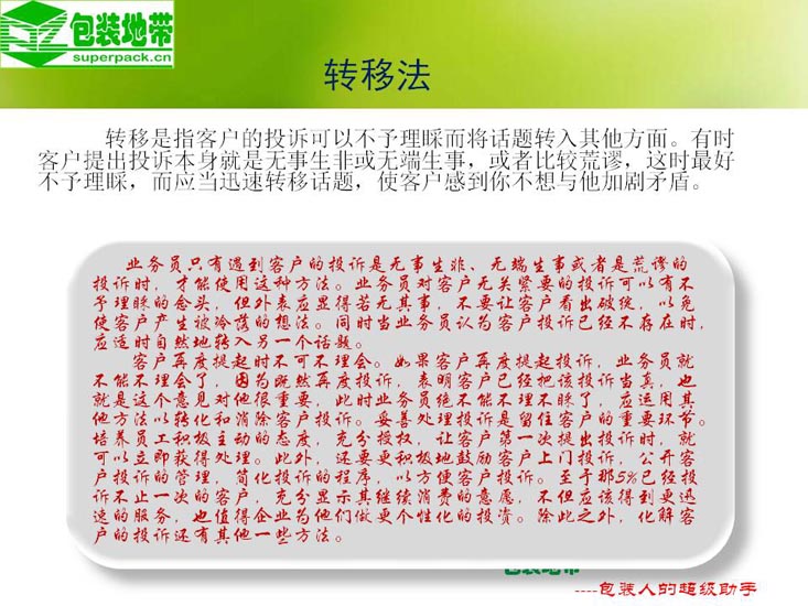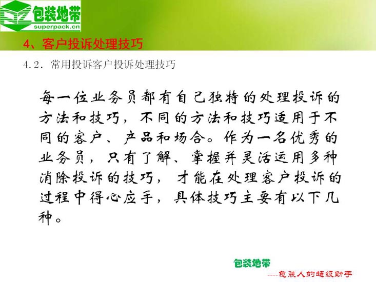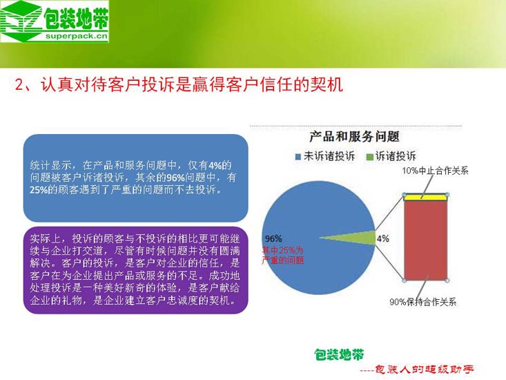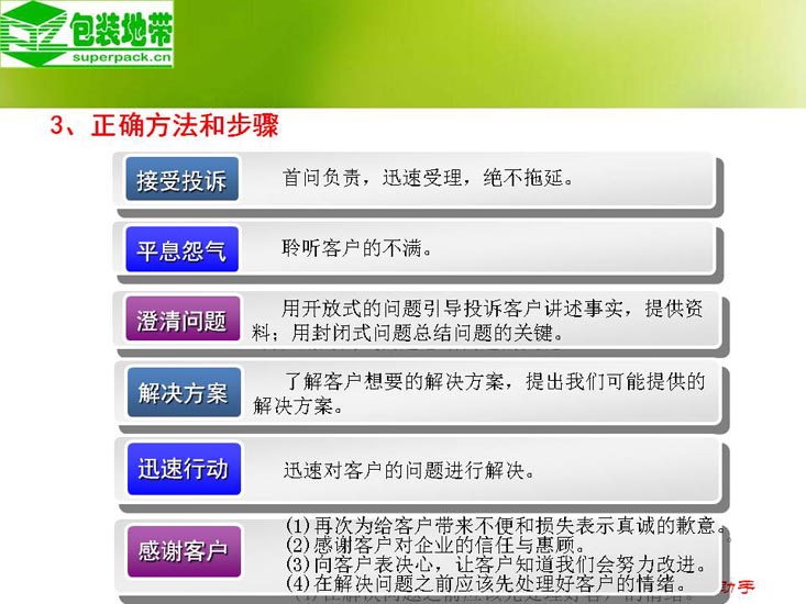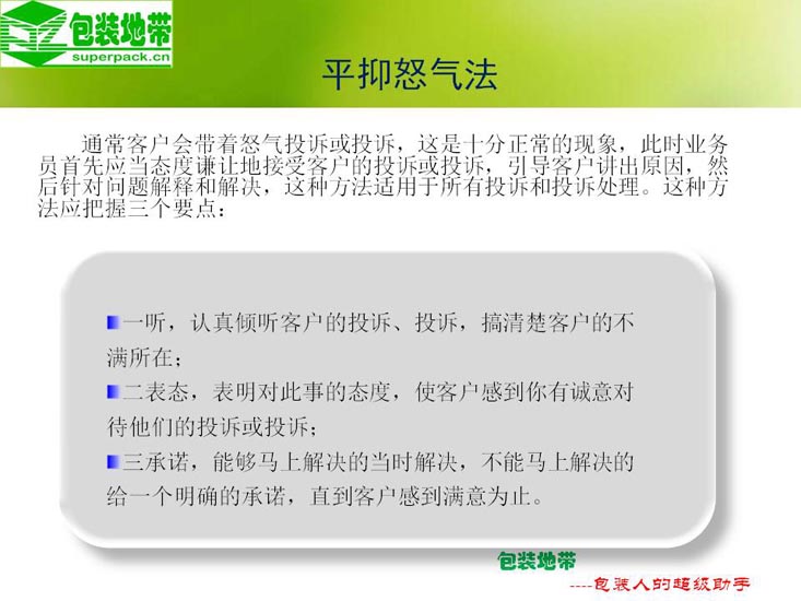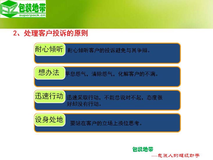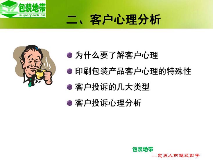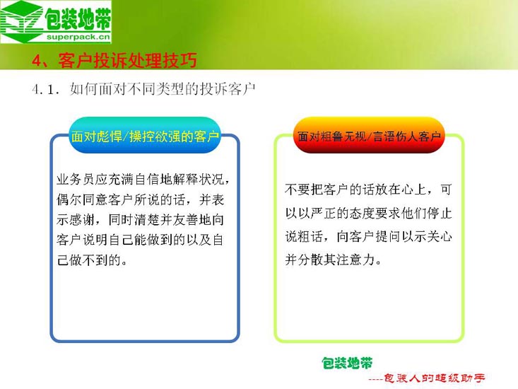随着市场竞争日趋白日化,提高客服人员的素质近在眉睫。因此企业有必要对员工处理客户投诉的技巧进行培训与考核。适用人员:印刷包装企业业务人员、跟单人员、客服及其它相关人员