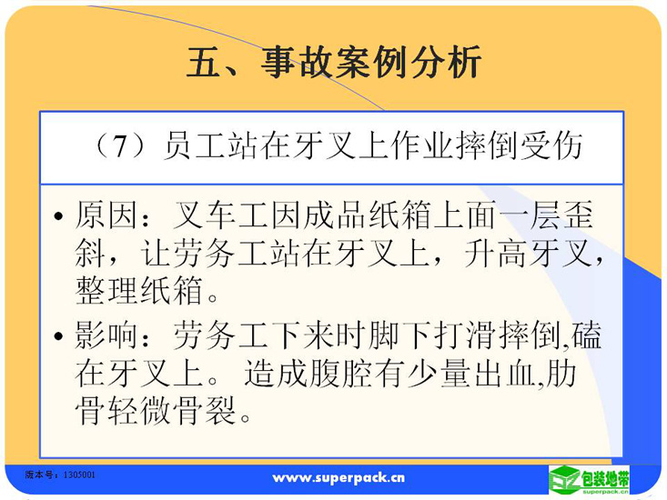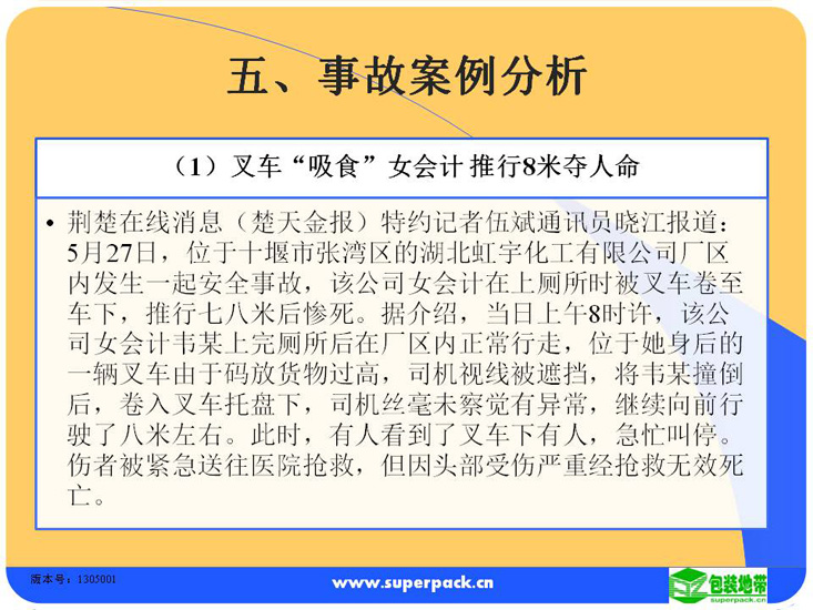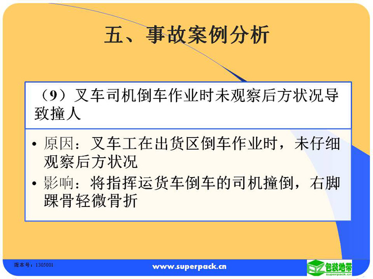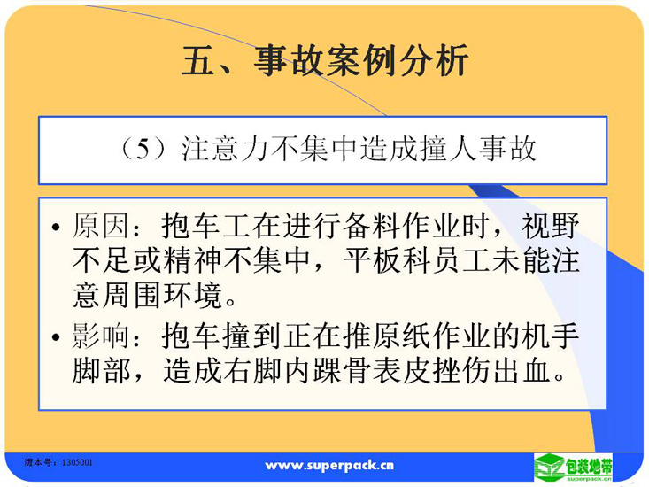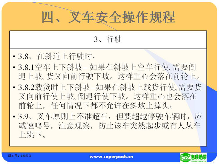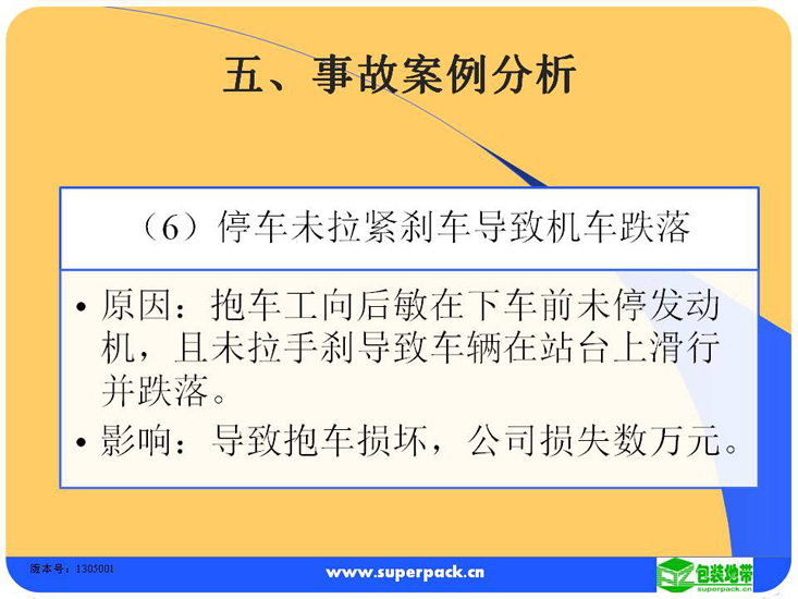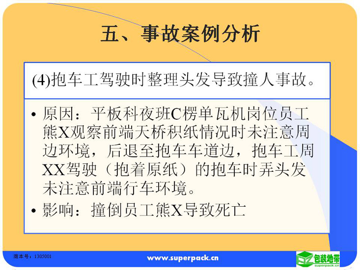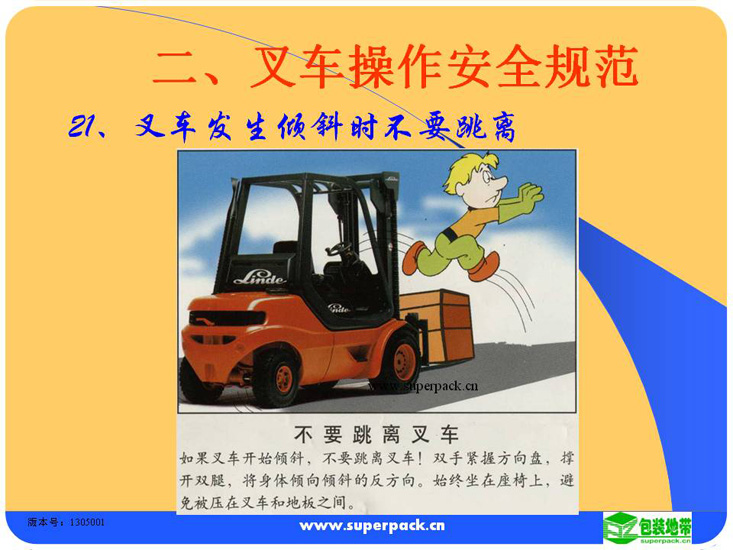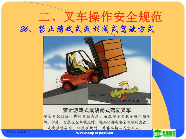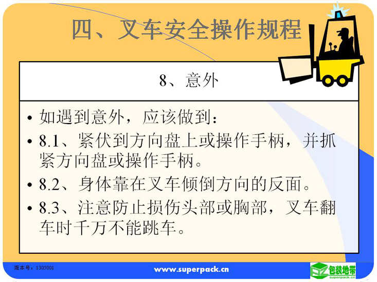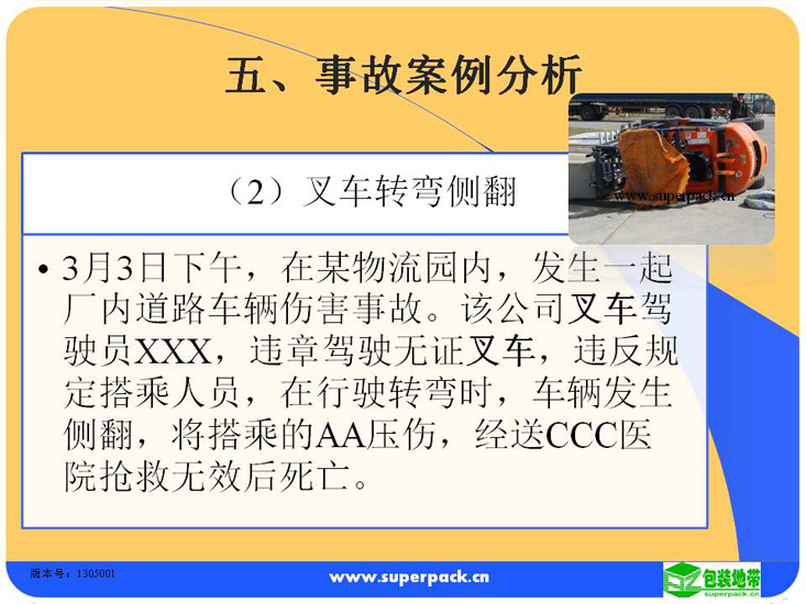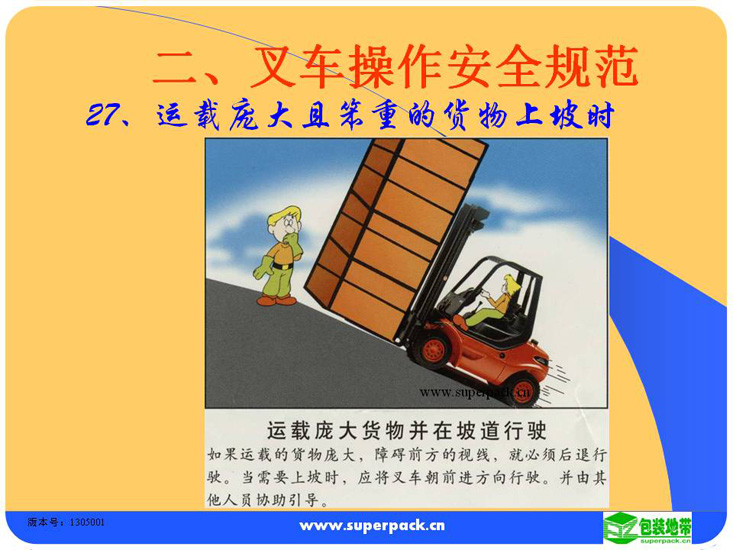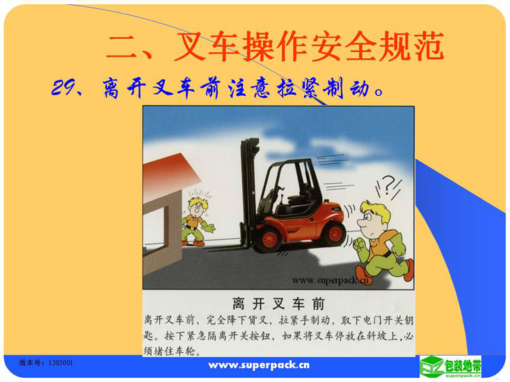 叉抱车是包装印刷厂必备但是却容易在安全管理上造成工作事故的设备。本电子书就是专门针对叉抱车的安全管理进行培训。主要内容包括:概述、安全操作规范、驾驶常见违规现象、安全操作规程、和事故安全分析。本电子书提供非常详细的图片及案例分析,实用性极强,尤其适合包装印刷厂的叉抱车工学习使用。也适合工厂管理人员培训叉抱车员工时作教材使用。